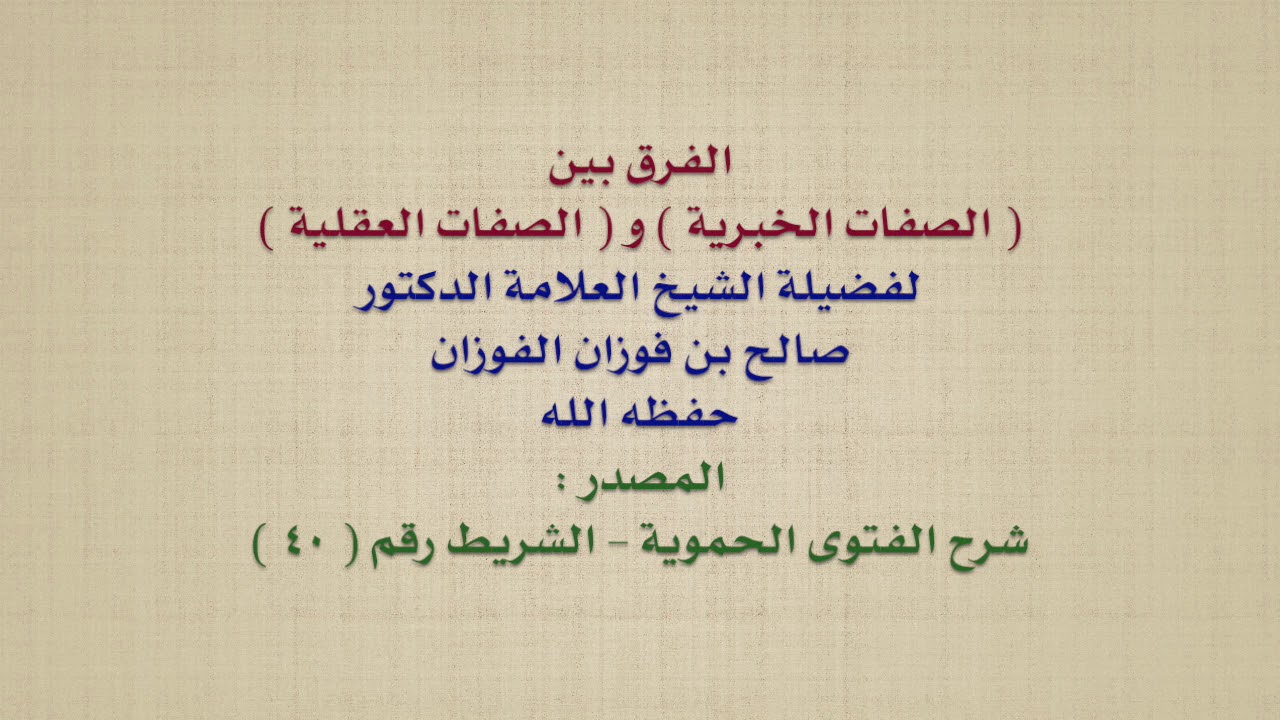 الشيخ صالح الفوزان الفرق بين الصفات الخبرية و الصفات العقلية Youtube